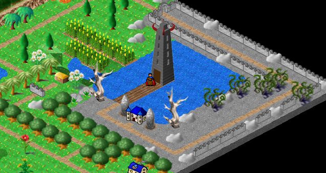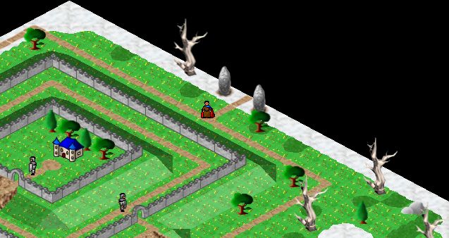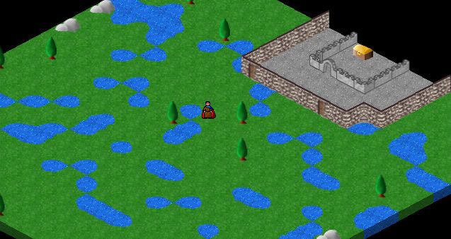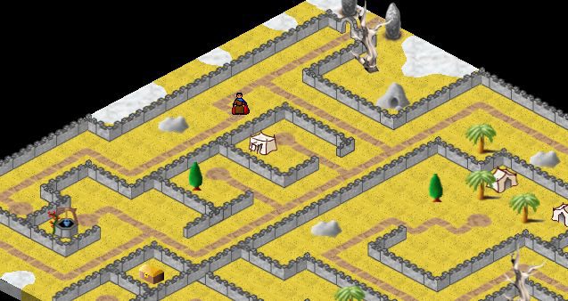 Un archer doit lancer une corde au dessus du mur qui protège le coffre pour ouvrir le passage. Quête terminée |
