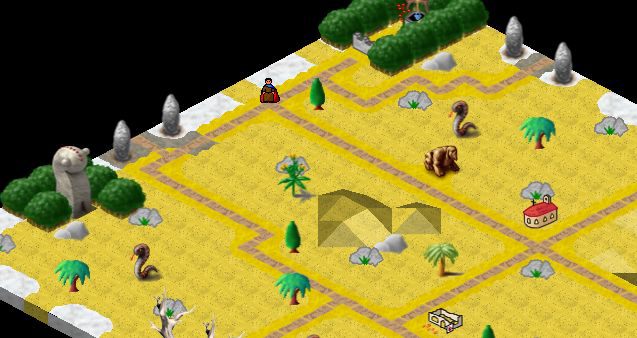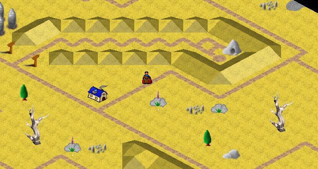 Concass #5 | Trou devant pyramide rempli grâce à la pelle de Carilane. Il faut ramener à l'enfant-roi un parchemin volé par un Mange-Pierre (ici). | |